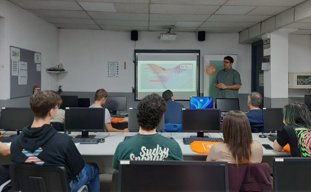 HETEL refuerza su colaboración con la empresa LKS con el objetivo de mejorar las competencias técnicas y transversales del alumnado de ciclos formativos de informática de HETEL. Esta semana se ha inaugurado en Zabalburu ikastetxea la tercera edición del primer aula empresa con un centro de FP, adaptando el modelo establecido en las universidades. Esta iniciativa está dirigida específicamente al alumnado de ciclos formativos de informática, con el objetivo de abordar los desafíos del sector digital de manera efectiva. La empresa LKS ha seleccionado 8 estudiantes de primero de Zabálburu y Lea Artibai ikastetxea que se van a dedicar hasta final de curso a proyectos de LKS, tutorizados por profesionales de esta empresa.