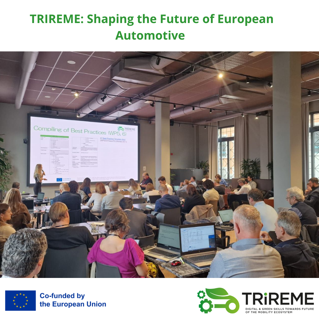 Representantes de HETEL, Egibide y centro Somorrostro participaron en Milán en la segunda reunión de socios del proyecto Blueprint TRIREME, apoyado por la Comisión Europea. En este proyecto participan 32 socios representativos del sector de la automoción, pertenecientes a 18 países, cuya finalidad es definir el futuro de este sector estratégico para la economía europea, favorecer la transición verde y digital en este ámbito y diseñar formaciones a medida que permitan hacer frente a los grandes retos del sector. Puedes seguir las novedades de este proyecto en esta página web: https://project-trireme.eu/